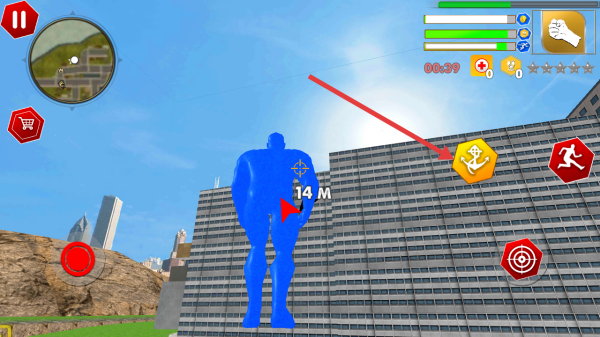 3、遇高樓建筑,點擊右側(cè)錨形技能按鈕,觸發(fā)攀爬,飛躍機制,跨越地形、完成關(guān)卡目標(biāo),積累資源解鎖新內(nèi)容。
