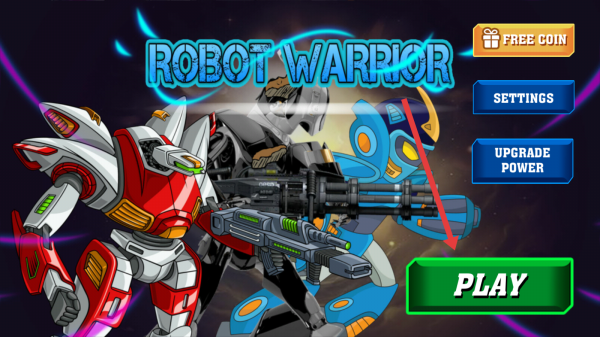 1、通過點(diǎn)擊主界面綠色PLAY按鈕,即可進(jìn)入Robot-Warrior游戲,開啟機(jī)甲戰(zhàn)斗冒險。