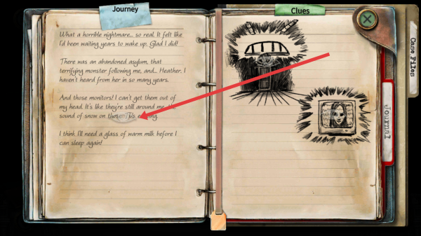 1、進(jìn)入游戲先查看Journey日記,了解噩夢(mèng)、廢棄asylum等故事背景,根據(jù)線索關(guān)聯(lián)后續(xù)場(chǎng)景探索,開啟冒險(xiǎn)。