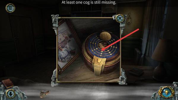 3、遇到星盤裝置謎題,依據(jù)提示At least one cog is still missing,尋找缺失的齒輪,嵌入裝置完成解謎。