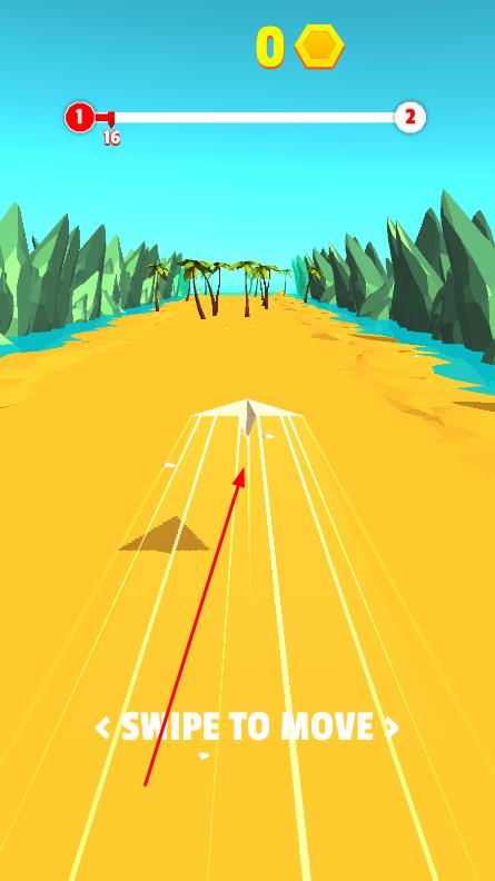 1、進(jìn)入游戲,在初始界面,點(diǎn)擊紙飛機(jī),進(jìn)入場(chǎng)景后,通過左右滑動(dòng)來控制紙飛機(jī)的移動(dòng)方向,躲避障礙物。
