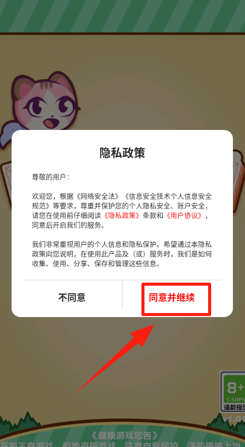 1、點(diǎn)擊隱私政策的同意并繼續(xù)進(jìn)入。