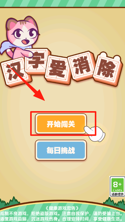 2、點(diǎn)擊紅色框框的開始闖關(guān)就可以玩了。