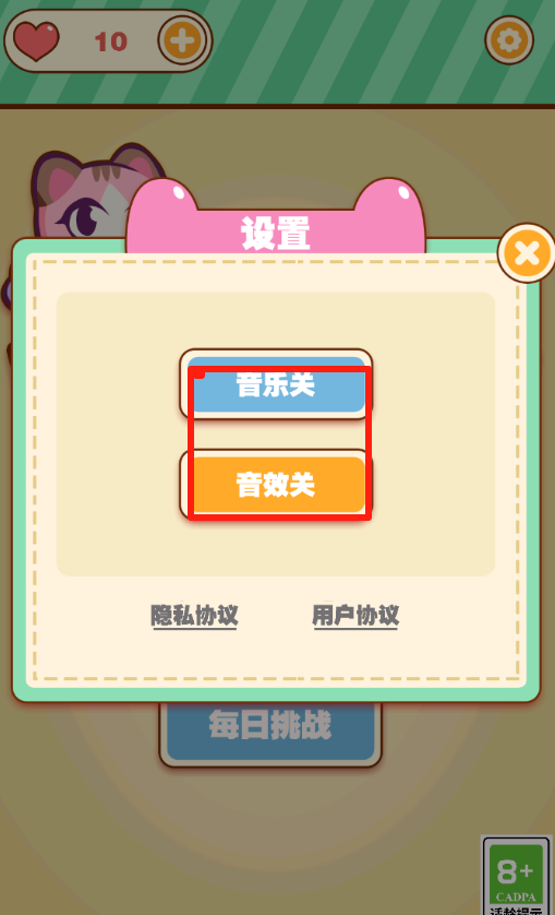 3、點(diǎn)擊設(shè)置進(jìn)來把音樂和音效都打開來體驗(yàn)游戲吧。