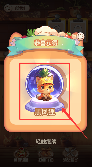 3、通過關(guān)卡后,有機會獲得"黑鳳貍"等稀有收藏品作為通關(guān)獎勵。