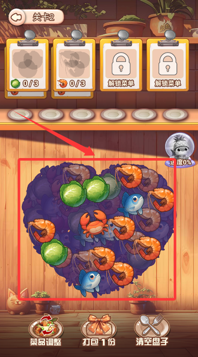 4、挑戰(zhàn)后續(xù)關(guān)卡時,根據(jù)更新的菜譜要求,尋找合適的材料進行組合。