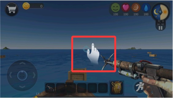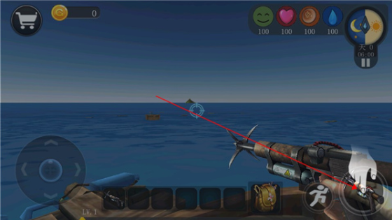 4、右邊的按鈕長(zhǎng)按可以控制工具進(jìn)行射擊捕撈。