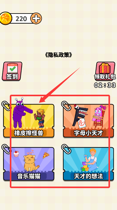 2、主界面提供多種玩法模式,可根據(jù)個(gè)人喜好選擇闖關(guān)挑戰(zhàn)等不同玩法。