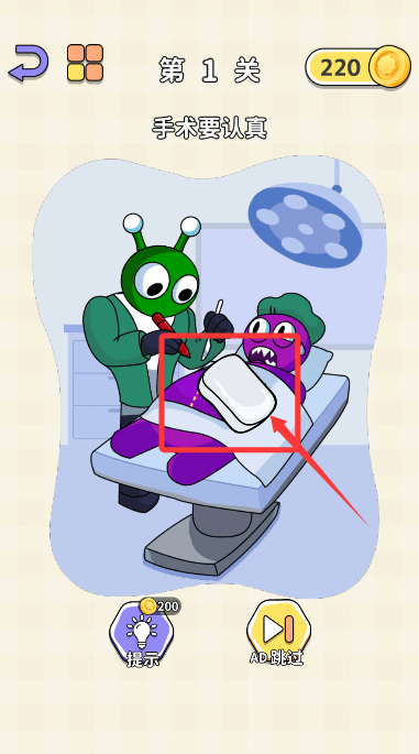 3、進(jìn)入關(guān)卡后依據(jù)系統(tǒng)提示,如第一關(guān)點(diǎn)指定位置完成操作通關(guān)。
