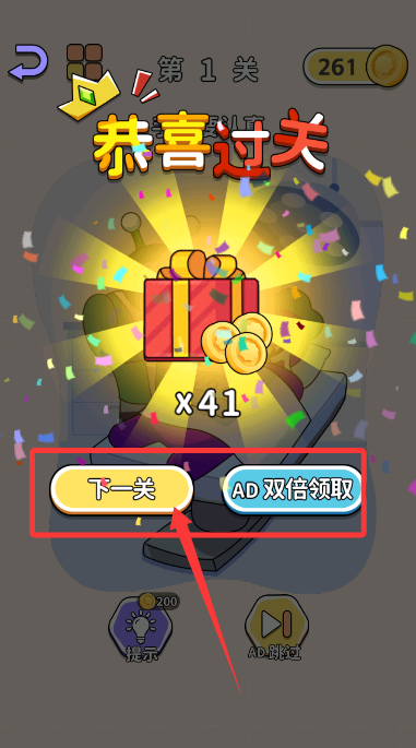 4、挑戰(zhàn)成功后,點(diǎn)擊“下一關(guān)”繼續(xù)游戲,或選擇雙倍選項(xiàng)獲取更多獎(jiǎng)勵(lì)。
