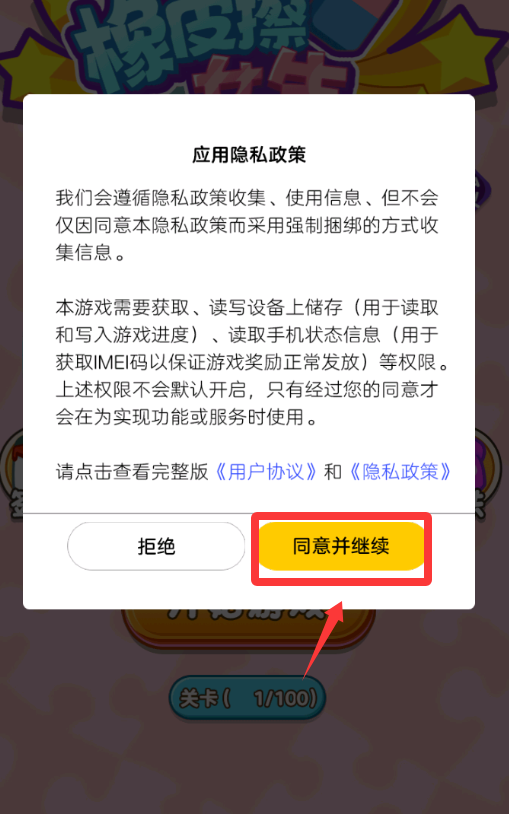 1、點(diǎn)擊應(yīng)用隱私政策里的同意并繼續(xù)。