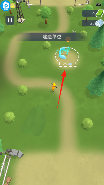 1、在建造單位階段,點(diǎn)擊紅箭頭指向的建造圈,消耗鉆石,建造防御或攻擊單位,布置在路徑,準(zhǔn)備抵御敵人。