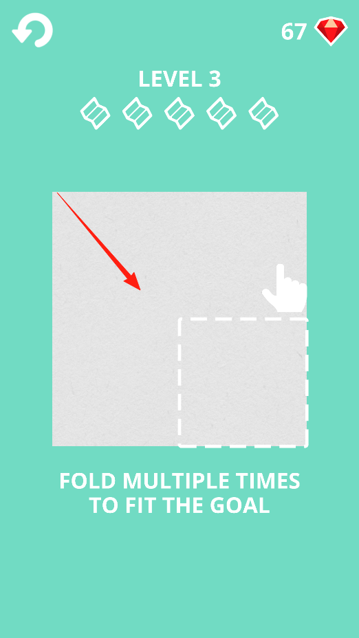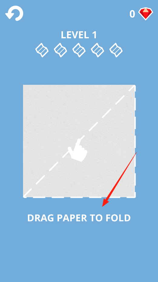 1、在Level1界面,依據(jù)指引拖動(dòng)紙張沿虛線折疊,通過(guò)手指滑動(dòng)操作將紙張的一部分覆蓋到另一部分,完成單次折疊動(dòng)作,觸發(fā)關(guān)卡進(jìn)程推進(jìn)。