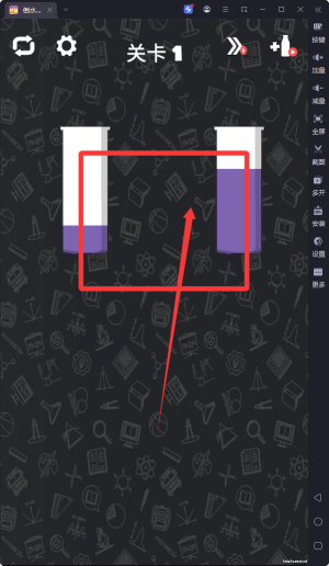 1、玩家需要通過點擊和滑動屏幕來控制試管中的液體流動,將不同顏色的液體混合成統(tǒng)一顏色以完成關卡目標。
