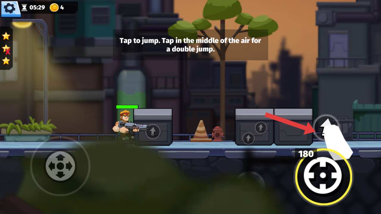 3、遭遇障礙如箱子時(shí),點(diǎn)擊跳躍按鍵起跳,空中再次點(diǎn)擊實(shí)現(xiàn)雙鍵跳,輕松跨越這些障礙。