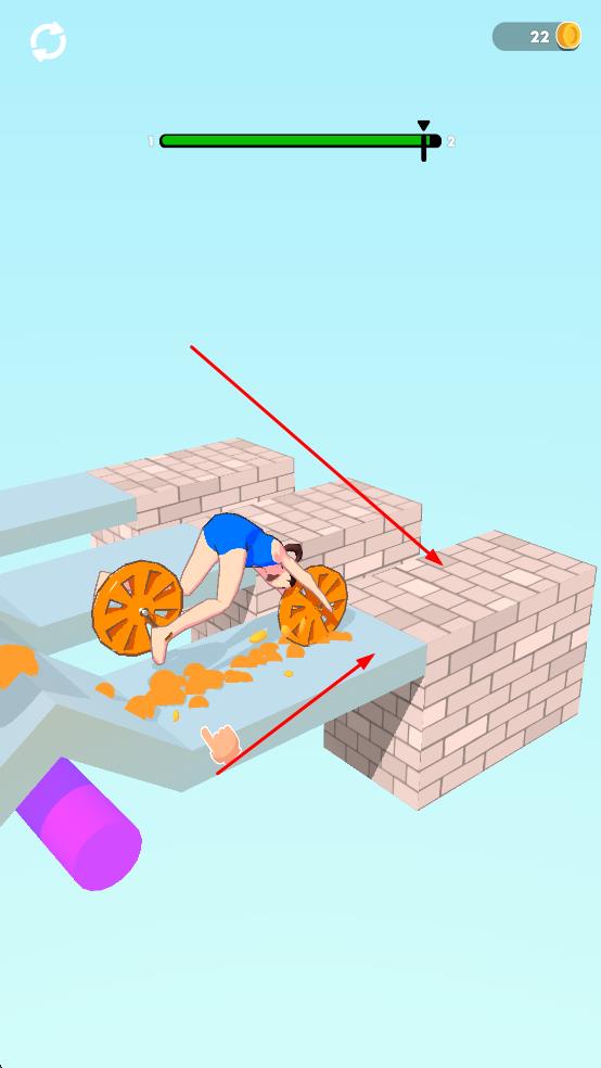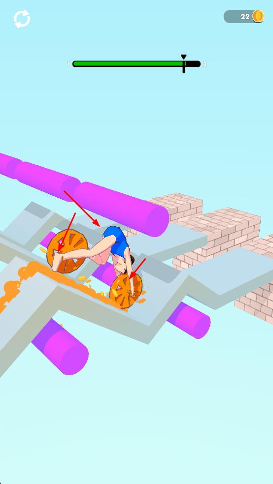 1、肢體操控跨越障礙:控制角色用柔軟肢體動作越過各種障礙物,或掃除阻礙、或靈活躲避,通過精準(zhǔn)操控應(yīng)對不同路況,在魔性動作中完成闖關(guān),鍛煉反應(yīng)與協(xié)調(diào)能力。