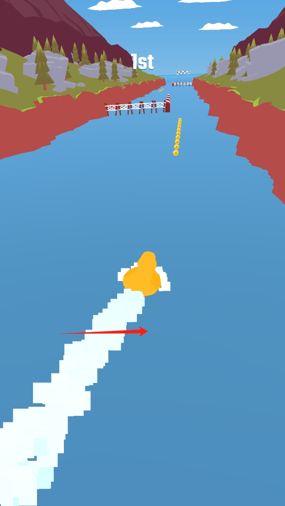 2、游戲中,靈活操控黃色鴨子狀角色,在水面快速前進(jìn),躲避障礙,盡可能收集沿途的金幣。