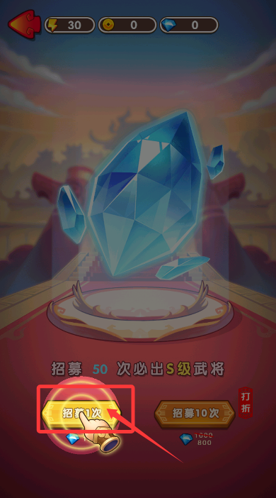 1、前往武將招募處,輕觸"單次召喚"選項,消耗指定材料隨機獲得新將領(lǐng)。