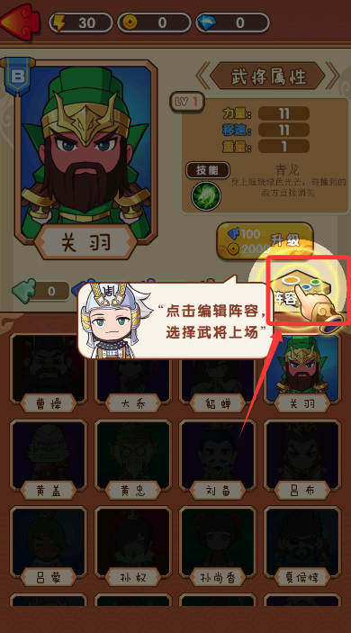 2、在武將圖鑒中,選定心儀角色,進入布陣界面將其編入出戰(zhàn)隊伍。