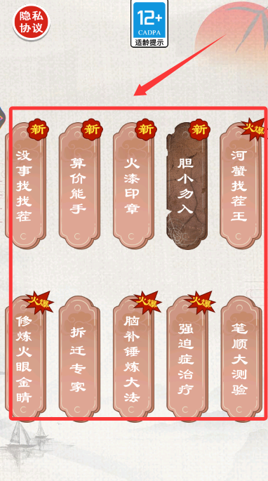 1、在游戲模式選擇界面,瀏覽"沒事找找茬"等創(chuàng)意玩法,挑選心儀的類型。