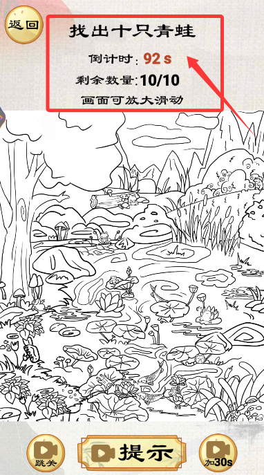 3、根據(jù)關(guān)卡提示的任務(wù)要求,通過縮放和滑動屏幕仔細搜尋畫面中的隱藏目標。