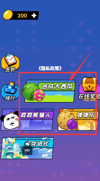 2、在主界面選擇熱門玩法"水果合成",開啟趣味十足的培育挑戰(zhàn)。