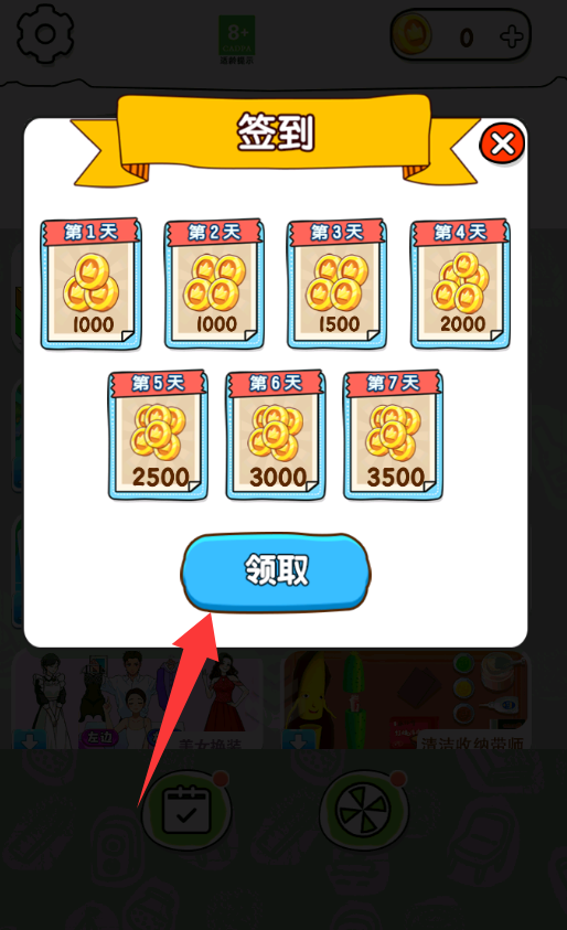 2、進入游戲點擊每日簽到領(lǐng)取獎勵。