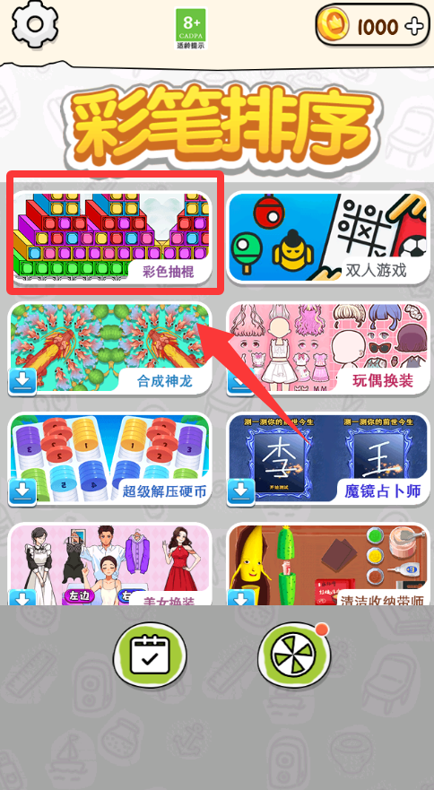 4、點擊紅色框框里的彩色抽棍就可以玩了。