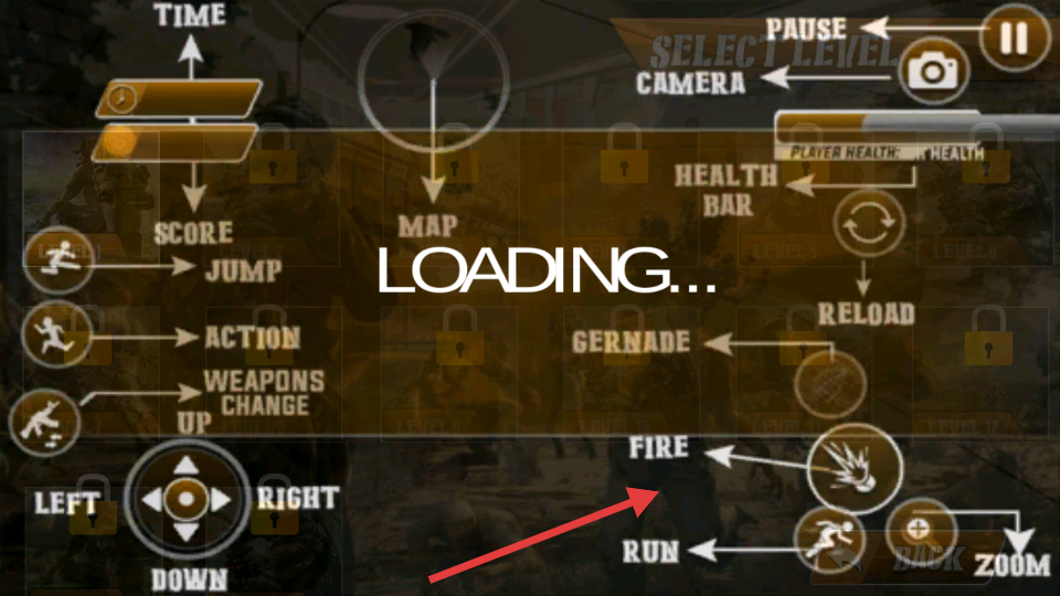 1、通過虛擬搖桿控制角色移動,滑動屏幕調(diào)整射擊視角。