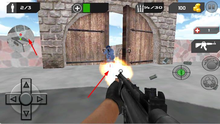 3、注意觀察屏幕左上角的敵人剩余數(shù)量和自身的生命值、彈藥量等信息,根據(jù)戰(zhàn)場情況靈活移動和射擊,消滅所有敵人,完成關(guān)卡任務(wù)。