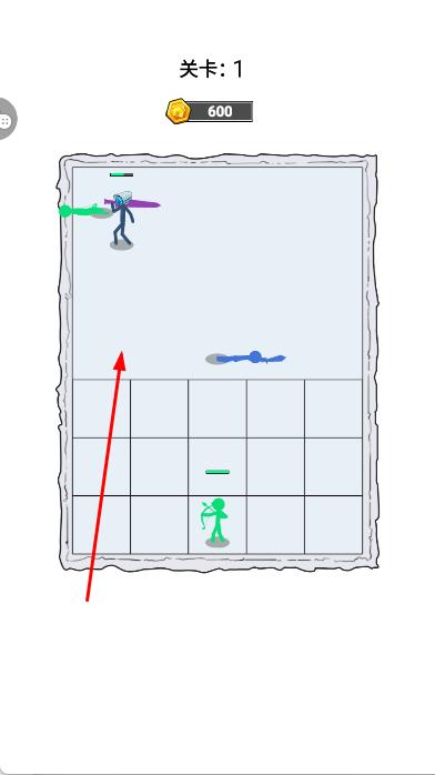 1、進(jìn)入主界面,選擇模式,點(diǎn)擊藍(lán)色火柴人角色,將其放置到合適的位,也可以選擇綠色火柴人角色進(jìn)行布置。