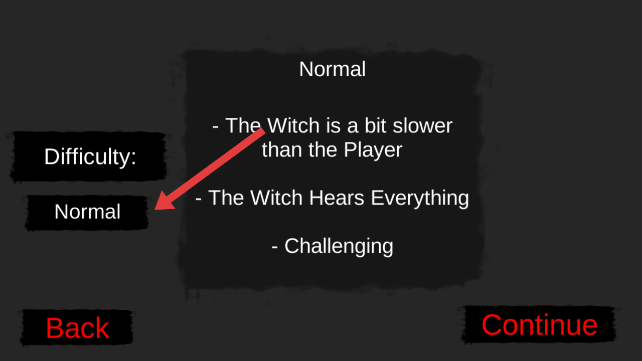 1、進入游戲后,它是默認為Normal的難度,該難度下女巫移動慢于玩家,但聽力靈敏,剛開始玩的新手可以先玩Easy模式。