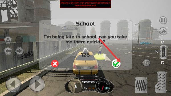 2、行駛中注意路況,避開障礙,遇到乘客請求如送學(xué)生去學(xué)校,點擊綠色對勾接單,按箭頭指引行駛。