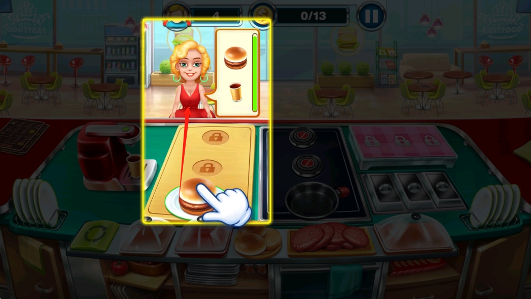 1、在點餐界面,仔細(xì)查看顧客需求,快速點擊對應(yīng)食物,開始制作,提升服務(wù)效率。