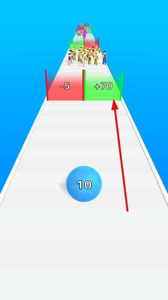 1、進(jìn)入關(guān)卡,操控滾球左右移動(dòng),選擇綠色增益區(qū)域,提升體積,避開紅色損耗區(qū)域,為后續(xù)碾壓敵人做準(zhǔn)備。