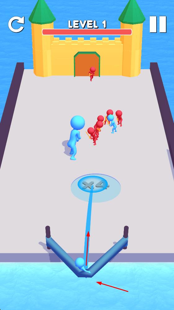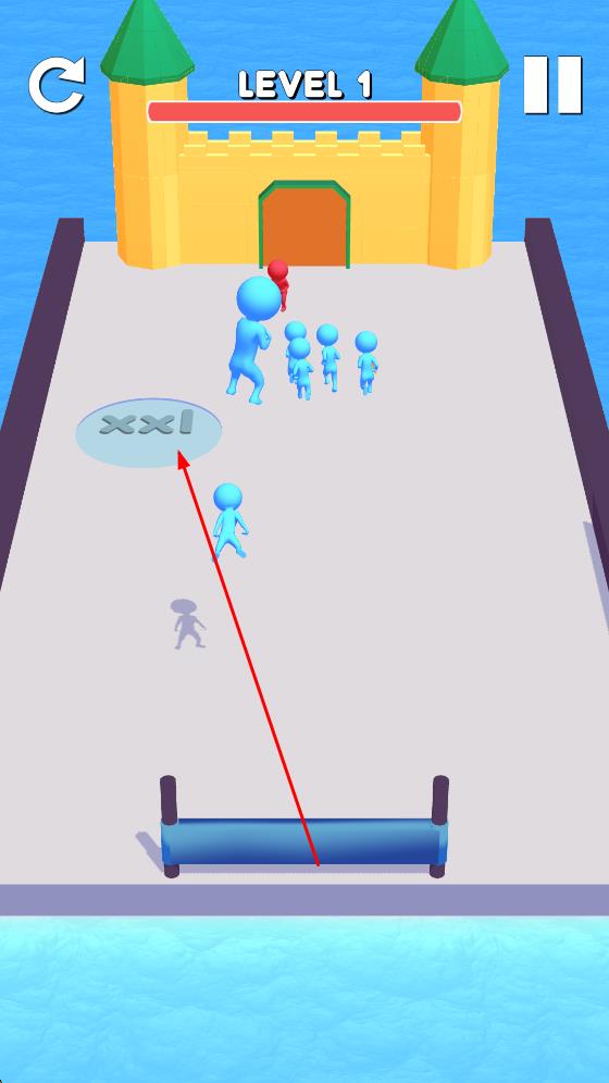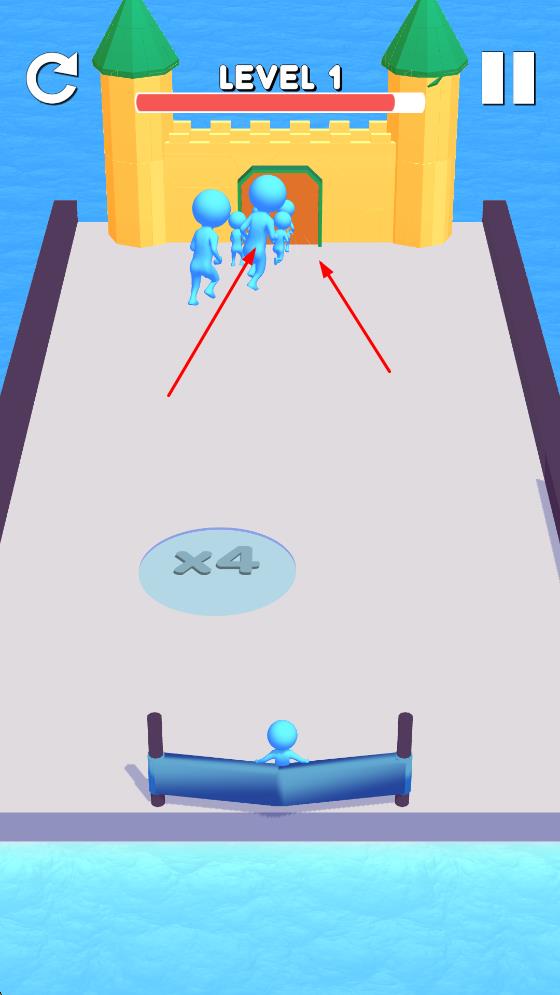 1、操控藍色小人從初始平臺出發(fā),前往帶有倍數(shù)標識的區(qū)域,收集同伴以壯大隊伍,開啟攻城挑戰(zhàn)。