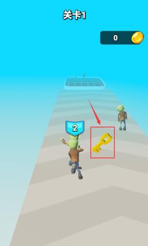 3、操控角色拾取紅框黃鑰匙,完成關(guān)卡1收集任務(wù)。