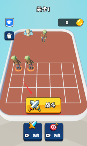 4、點(diǎn)擊紅框戰(zhàn)斗按鈕,開始關(guān)卡1僵尸對戰(zhàn)模式。