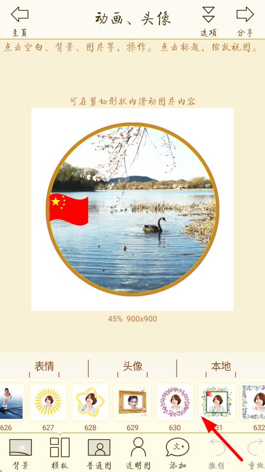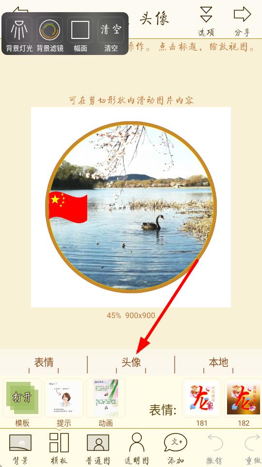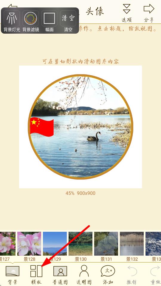 2、在制作界面下方,點(diǎn)擊模板選項(xiàng)挑選合適的頭像模板。