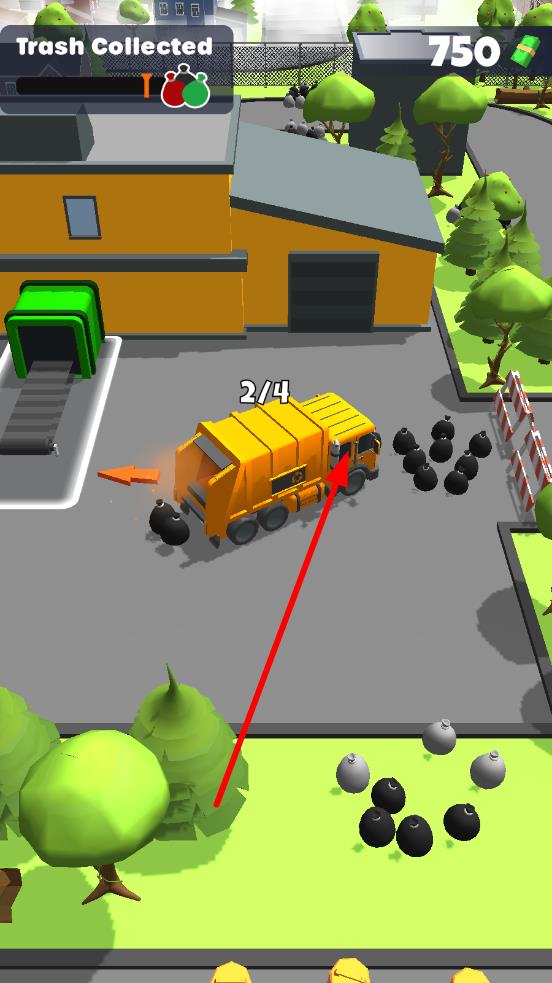 1、滑動屏幕控制卡機(jī)車,在在城市道路行駛,靠近垃圾,自動收集,收集完的垃圾放到處理廠后,會獲得金幣。