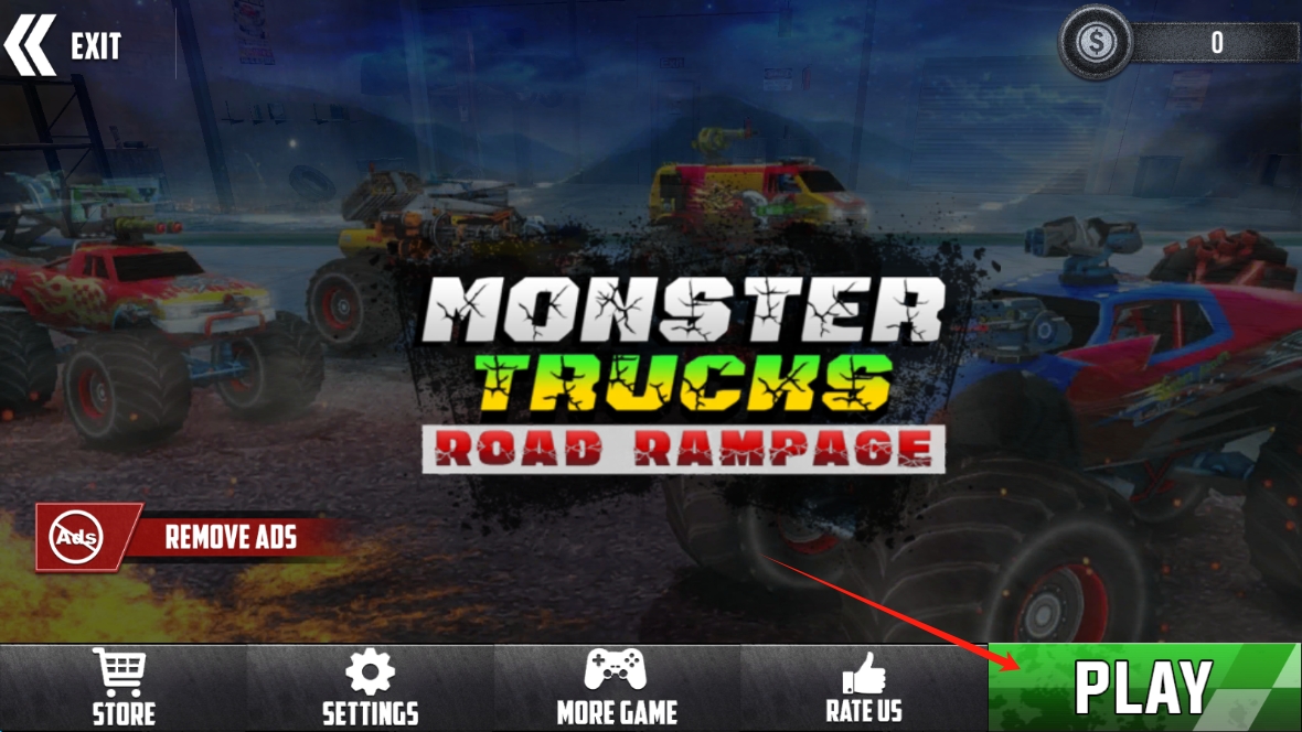 1、點擊PLAY進入游戲,若有需求,可提前進入商店購買道具或車輛,也可在設置中調整游戲參數。