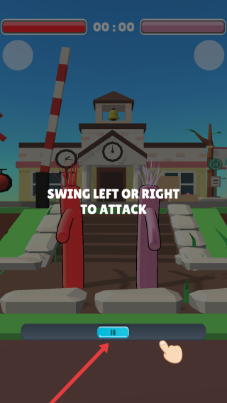 2、戰(zhàn)斗準(zhǔn)備階段,按照提示左右擺動(dòng)下方操控桿,調(diào)整角色攻擊方向,為對紫色對手發(fā)起進(jìn)攻做好操作準(zhǔn)備。