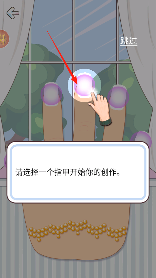 2、進(jìn)入創(chuàng)作環(huán)節(jié),選一個指甲開始,點(diǎn)選好的指甲,就能進(jìn)入涂甲油貼裝飾的步驟,每根手指都能設(shè)計不同風(fēng)格,自由發(fā)揮創(chuàng)意。