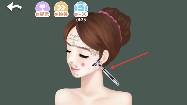 2、在面部美容關(guān)卡,按指引操作工具,如剃須刀,處理角色面部毛發(fā)、瑕疵,完成基礎(chǔ)美容步驟。