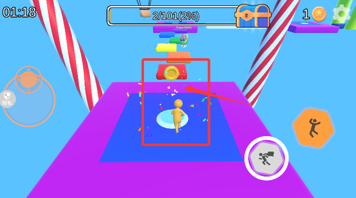 3、通過虛擬方向鍵操控角色靈活走位,及時避開沿途的障礙物。