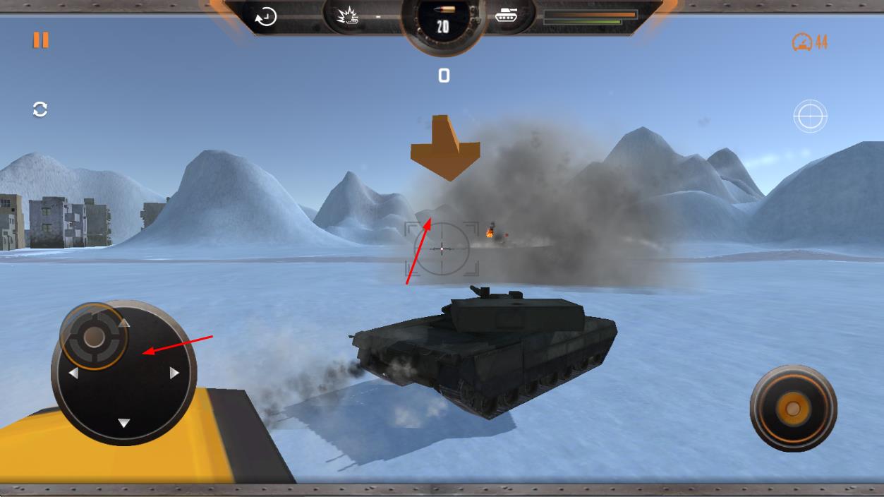1、進(jìn)入游戲選擇心儀坦克機(jī)甲,在對(duì)戰(zhàn)地圖中通過(guò)虛擬搖桿操控移動(dòng),點(diǎn)擊屏幕瞄準(zhǔn)敵方坦克開(kāi)火攻擊。