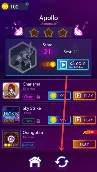 2、關(guān)卡挑戰(zhàn)與分?jǐn)?shù)目標(biāo):在不同場(chǎng)景(如帶激光特效的清晨背景)中挑戰(zhàn)關(guān)卡,需達(dá)到指定分?jǐn)?shù)才能過(guò)關(guān),難度隨進(jìn)程提升,考驗(yàn)節(jié)奏敏感度與動(dòng)作協(xié)調(diào)性。