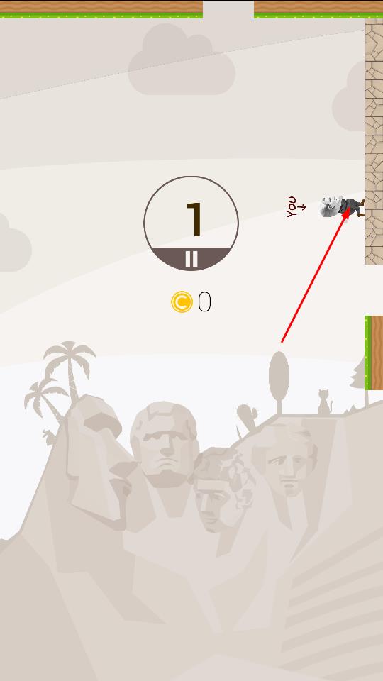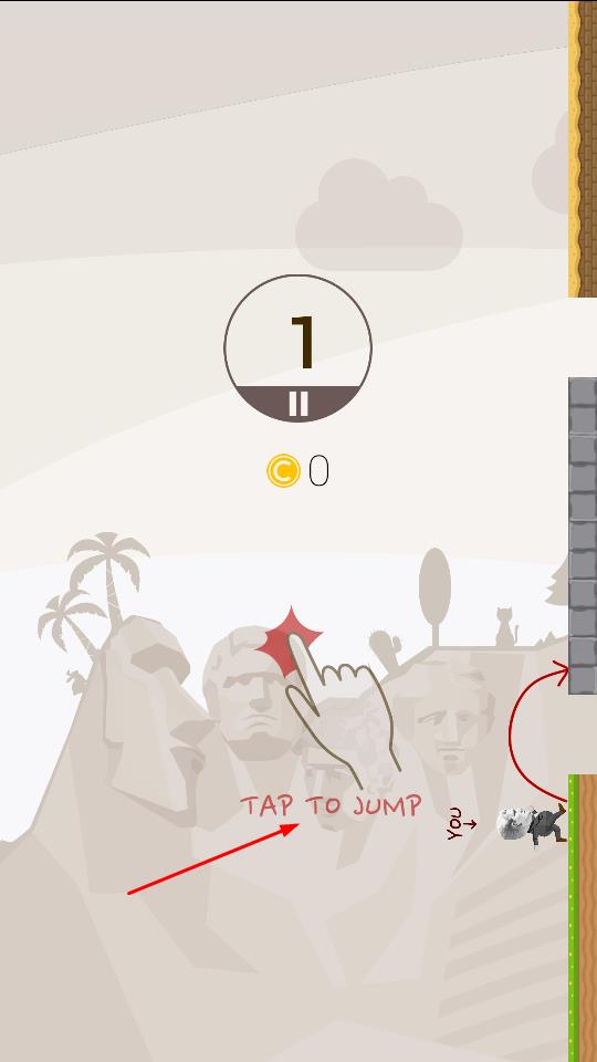 1、首先進入游戲,依據(jù)TAP TO JUMP提示,點擊屏幕操控右側灰色角色跳躍,開啟關卡上方數(shù)字1標識挑戰(zhàn)。