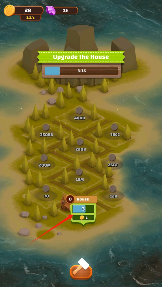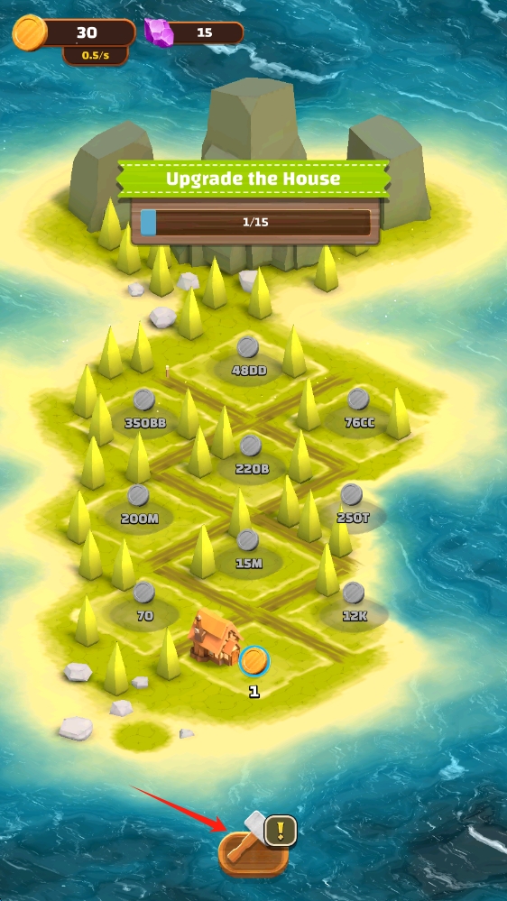 3、消耗資源,點(diǎn)擊升級(jí)按鈕,提升房屋等級(jí),增強(qiáng)島嶼經(jīng)營(yíng)能力,推進(jìn)游戲進(jìn)程。