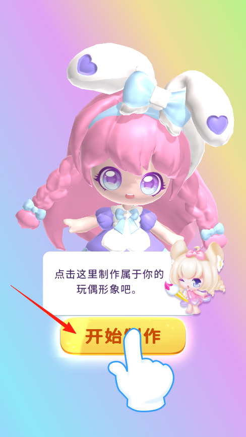 1、點開始制作按鈕就能進(jìn)入角色編輯器,可以給玩偶換發(fā)型、衣服這些基礎(chǔ)造型,雙馬尾和兔子耳朵這些裝飾品都能自由搭配,調(diào)色盤里還能選自己喜歡的顏色來個性化裝扮。